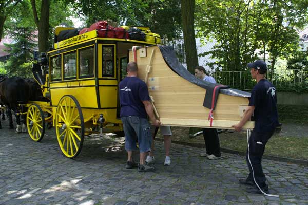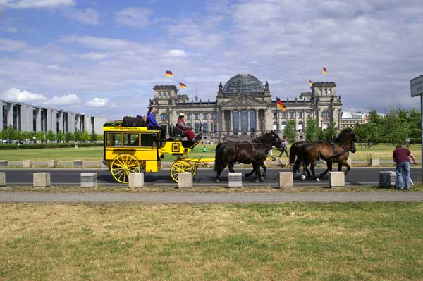 In dieser Weise beladen rollen wir zuerst mitten durch Berlin, vorbei am Reichstagsgebäude.